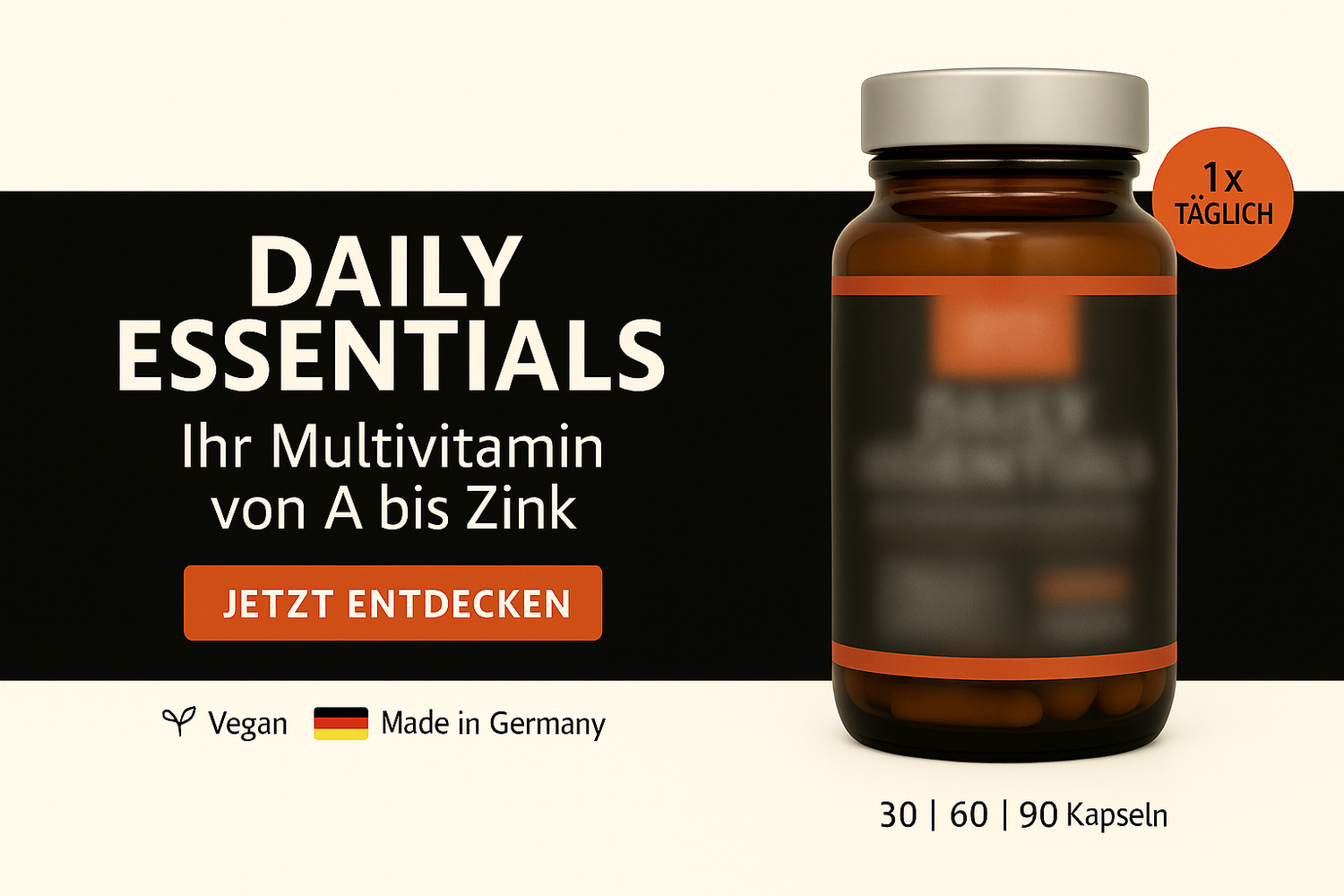 Daily Essentials ist für Erwachsene geeignet, die ihre Ernährung gezielt mit essenziellen Vitaminen und Mineralstoffen ergänzen möchten – besonders in Zeiten erhöhter Belastung, Stress oder unausgewogener Ernährung.